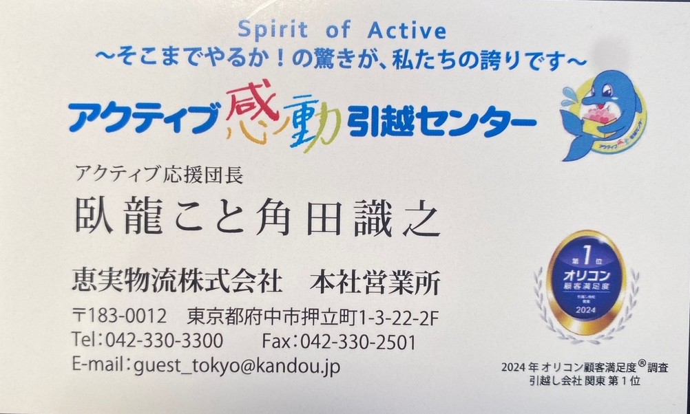 2.お客様のご利用間隔が長い引越業において、一年間のご利用件数の中で、リピーター顧客と紹介顧客を合わせた件数の割合である「ファン率」で83%!!を実現し、CS調査で最も有名なオリコン調査で「関東地区1位」を二年連続受賞した「アクティブ感動引越センター」の皆さまに、その舞台裏を語っていただきます。