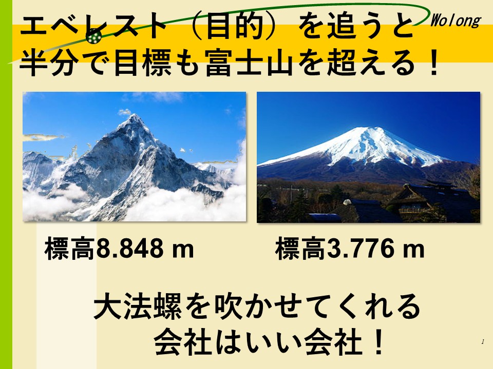 「エベレストを目指せば半分行っても富士山を超える」ので、自分の潜在能力を信じ、思い切って「理想への登頂」を目指すことです!