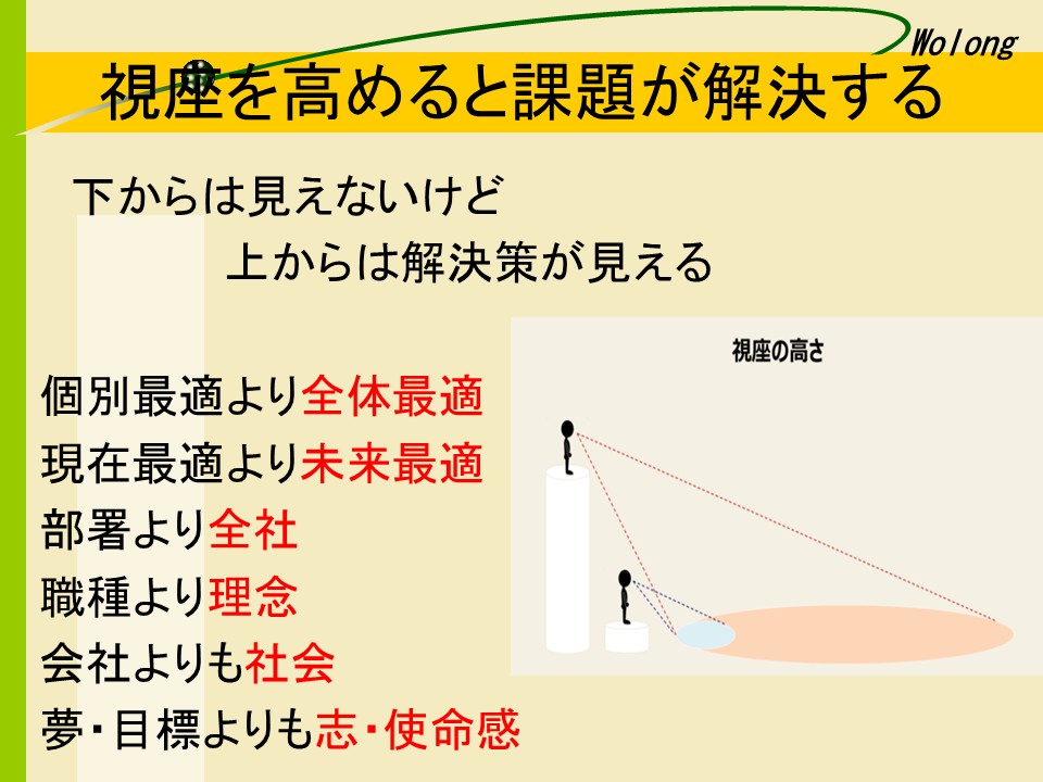 日々の業務に追われていると、目線は自然と目先・足元に落ちていきます。本来自分がどこに向かっていたのかを忘れていきます。