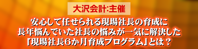 大沢会計:主催 安心して任せられる現場社長の育成に長年悩んでいた社長の悩みが一気に解決した「現場社長6か月育成プログラム」とは?